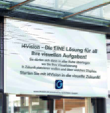 Empfangspanel in der Firmenlobby oder in Arztpraxen, als Anzeigemöglichkeit von Firmeninformationen oder Neuigkeiten, ergänzt mit aktuellen Bildern der letzten Kundenveranstaltung.